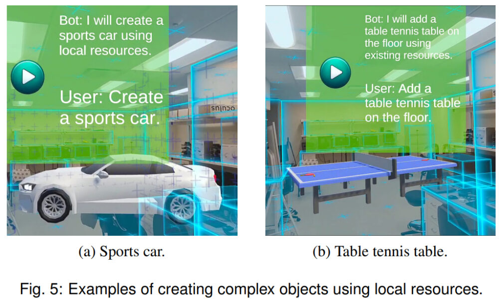 XR Blocksのような生成AIとXRの融合技術の類似研究には、ペンシルバニア州立大学らの研究チームが2025年2月に発表したフレームワーク「LLMER」があります。このフレームワークは、XRヘッドセットのマイクに対して自然言語による指示を入力すると、その指示にしたがって特定のタスクを実行する、というものです。タスクの実行にとどまるこのフレームワークは、XRアプリ開発を可能とするXR Blocksと比べると、応用範囲がやや狭いと言えます。