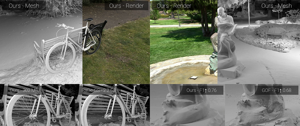 今回発表されたLang3D-XL、GigaSLAM、MILoの論文でもGaussian Splattingはその根幹を支え、Gaussian表現は3Dモデルや3D環境の再現と、AIを活用した学習・生成・編集・意味付けを同時に成立させる希少な表現形式になりつつあります。3Dメッシュは編集に強いが、AIでの機械学習との相性が悪い傾向があります。