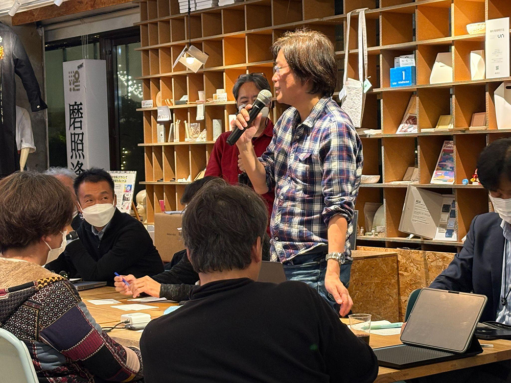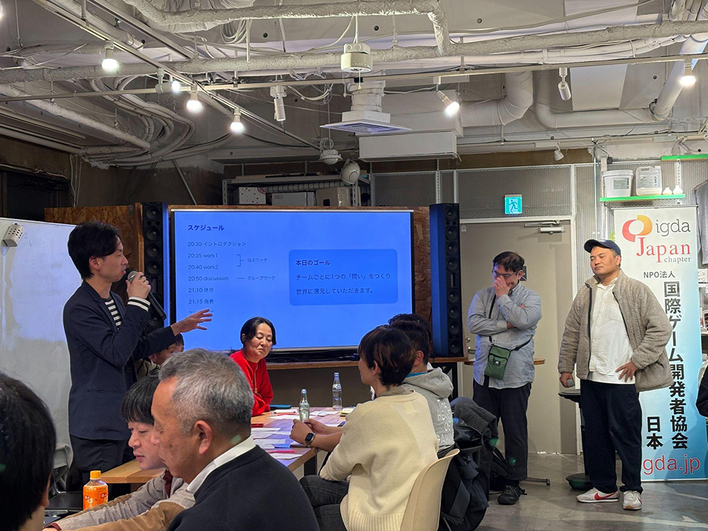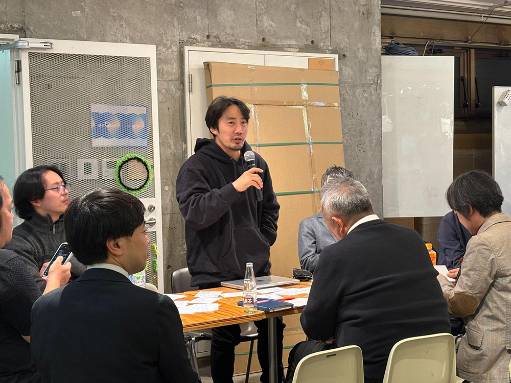 後半は、FabCafe Tokyoの2階へ場所を移し、4グループに分かれてワークショップが行われました。進行は哲学塾イベント全体を総括する犬飼博士氏と、前回もワークショップを担当していたnewQの瀬尾浩二郎氏です。