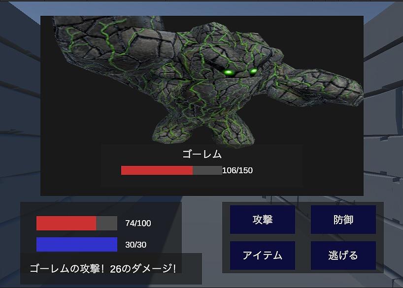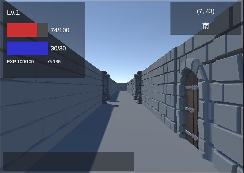 以上の二刀流開発環境を用いて、ウィザードリィ風の3Dダンジョンゲームの基本仕様(ダンジョン内でエンカウントしたモンスターと戦闘する)は簡単に実装できました。苦戦を強いられたのは、ダンジョンをウィザードリィ風のグラフィックにする調整でした。