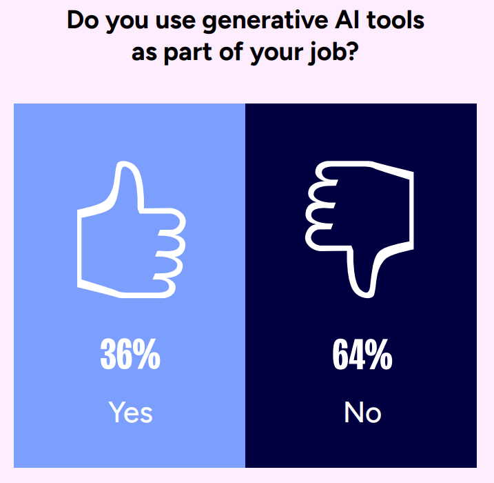 以上のような回答者に「業務で生成AIツールを使っていますか」と質問したところ、36%が使っていると回答しました。