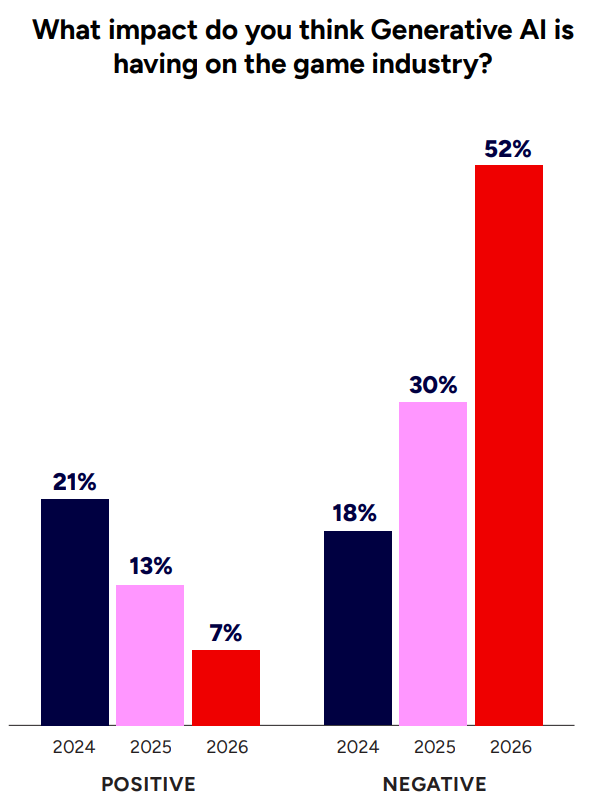 GDCの調査によれば一部を除くゲーム業界全体での生成AIの印象は悪化